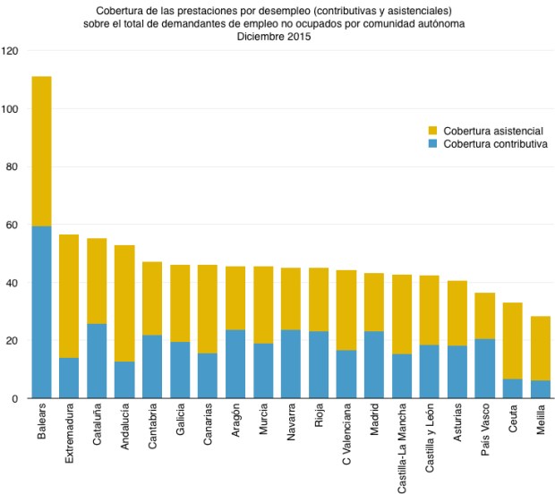 En la situación contraria, en Ceuta, Canarias y Andalucía, la demanda efectiva resulta minoritaria, e inferior a la media española, a pesar de las fuertes caídas de la afiliación, superiores a -6%.